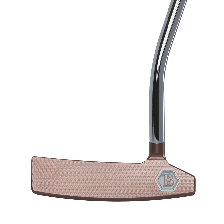 NEW! CARAMEL COPPER PVD FINISH Our all-new Caramel Copper PVD brings aesthetic charm to complement the features of the Queen B line. This stunning finish not only enhances the timeless beauty of each model but is extremely durable and glare-resistant, ultimately optimizing visual cues on the greens to give a confidence-inspiring appearance at every crucial putt. PREMIUM COMPONENTS Each Queen B Series putter comes paired with a premium matching Honeycomb patterned headcover and Lamkin Sink Fit grip available in both standard and jumbo sizes.